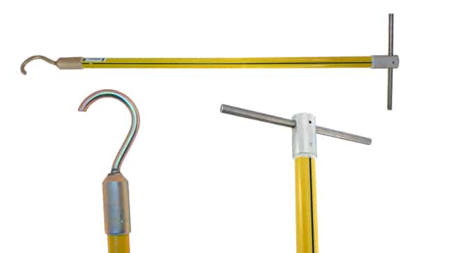 The Switch Hook Stick is a heavy-duty alternative to a standard Shotgun stick when actuating sectionalizing loadbreak switches, or when high torque switching applications are required. The stick is constructed from 1.25” closed cell, foam-filled fiberglass, features a 3.5” dichromate-coated steel hook that aligns with our BLUE STRIPE®, and ends in a stainless steel T-handle or an optional spline end.