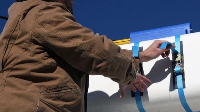Disconnect and NEMA Switch heads conveniently fit into a slot closest to the operator. With 3 supplied straps, ratchets and rubber pads, the Boom Holster can hold any length stick and adjusts to accommodate different sticks easily.