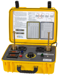 The Grounds Tester can evaluate cable sizes from #2 to double 4/0 and plugs into a standard 120V, 15 amp receptacle and includes thermal overload protection. Optional adapters are available from Utility Solutions for use with the Grounds Tester.